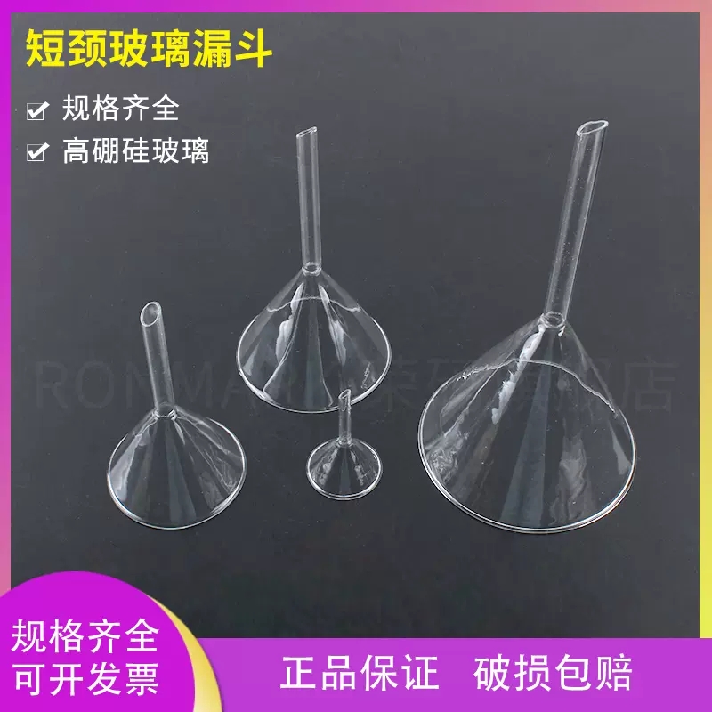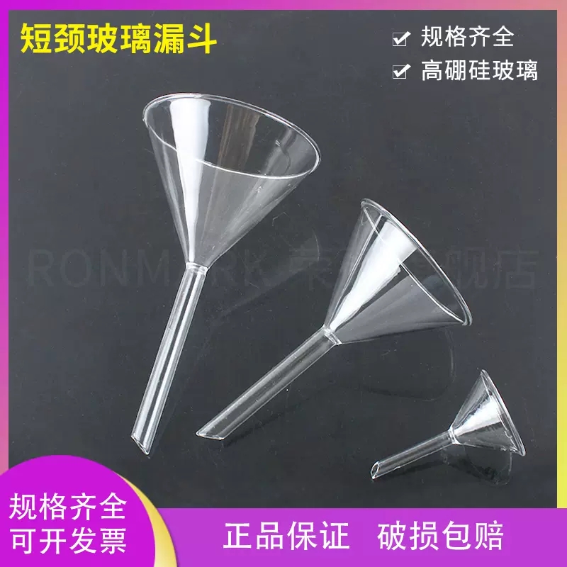 产品名称:短颈玻璃漏斗 材质:高硼硅玻璃 特点:透明度高,质地轻盈
