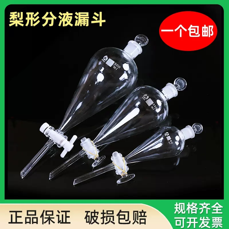 产品名称:梨形分液漏斗 材质:斗体:玻璃活塞:玻璃/加厚四氟 产品用途:萃取分液,分离提纯