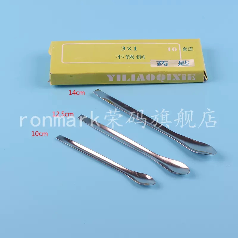 单头药勺;长16cm宽度1.6cm; 单头药勺;长18cm宽度1.7cm; 单头药勺;长20cm宽度1.8cm; 单头药勺;长22cm宽度1.9cm; 一头勺一头铲;长20cm勺宽度2.0cm铲宽度1.5cm; 双头勺;长20cm小头1.2cm大头1.5cm; 双头勺;长22cm小头1.4cm大头1.9cm 3*1不锈钢小药勺为10+12.5+14cm各一把
