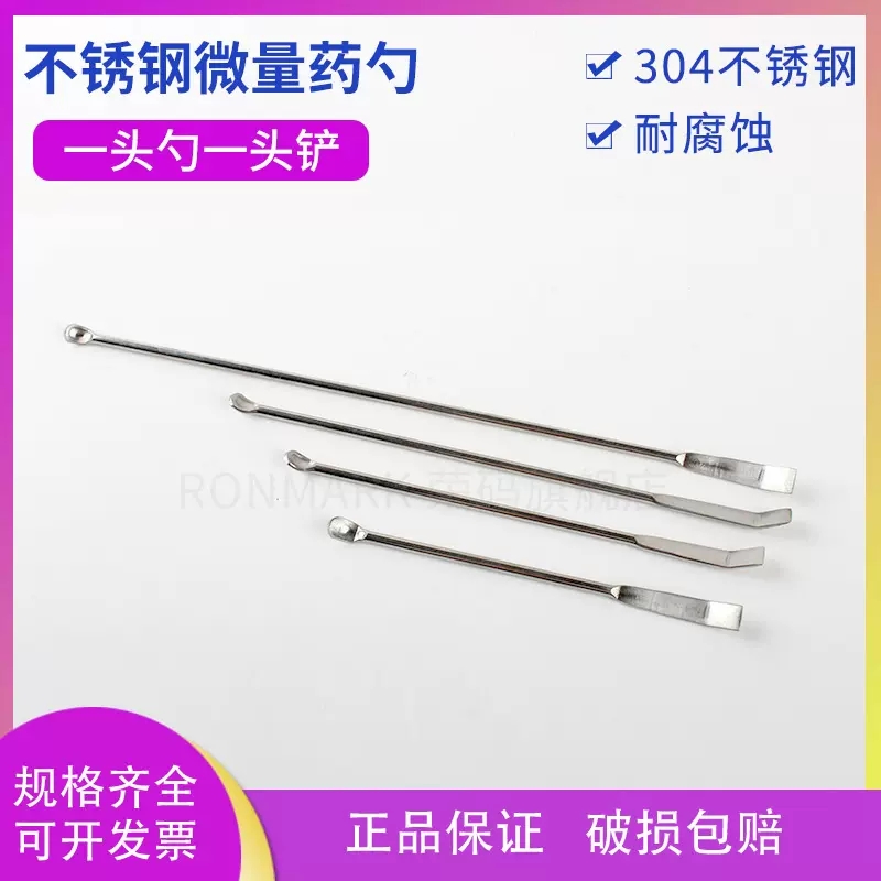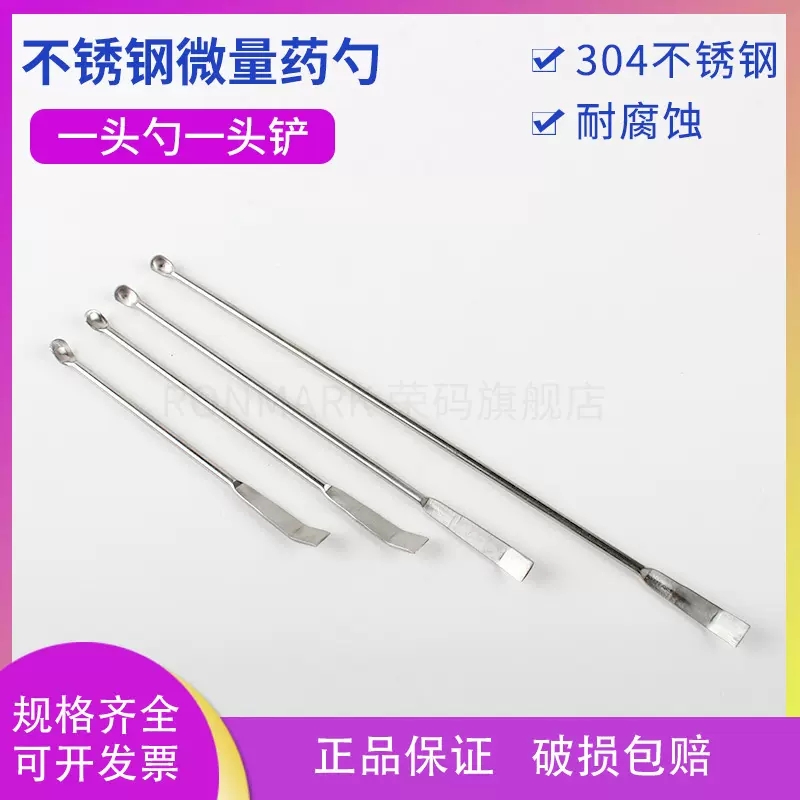 产品名称:不锈钢微量药勺/药铲 材质:304不锈钢 特征:规格齐全,长度合适,使用方便,一头药勺,一头药刮,满足不同需求。